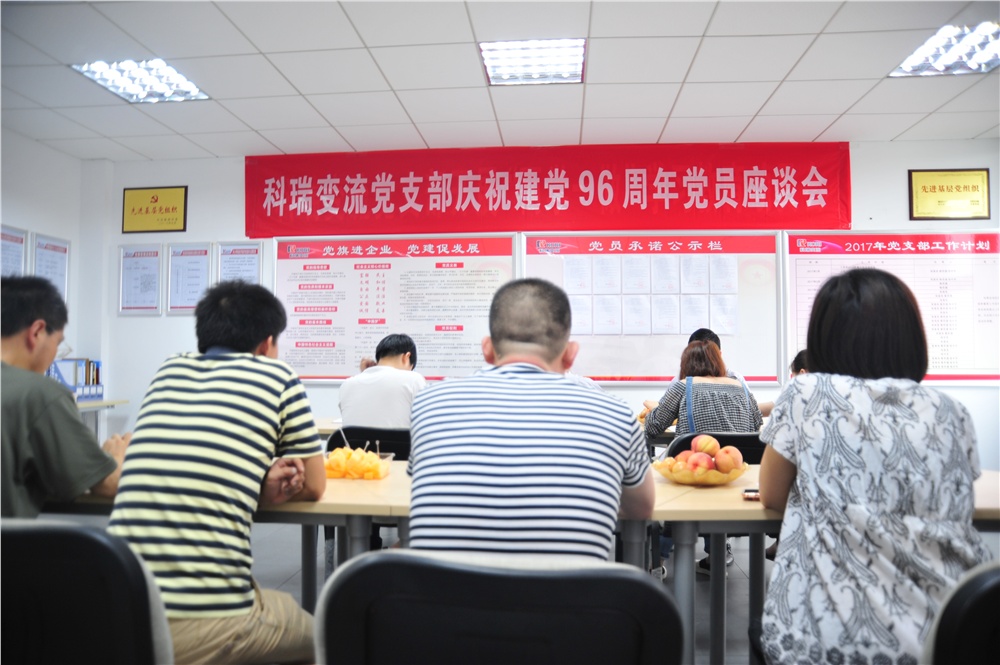 2017年6月30日下午,公司党支部在四楼会议室召开了“庆祝中国共产党建党96周年党员座谈会”,会议由公司党支部书记兼副总经理张富良同志主持。会议伊始,全体党员庄严的举起右手重温了入党誓词,然后大家就新时期如何立足自身本职工作,做一名合格党员进行了座谈发言。通过这次座谈会,进一步加强了公司党支部的凝聚力,进一步增强了各位党员的党性,党员同志纷纷表示在今后的工作中将以更加饱满的工作热情,更高标准严格要求自己,全身心的投入工作,为科瑞美好的明天而努力奋斗。