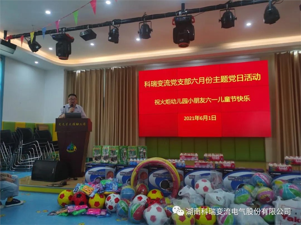 6月1日下午,公司党支部在湘湾火炬幼儿园开展了主题党日活动。公司党支部班子成员和部分党员、天元区教育局副局长胡岚女士、火炬幼儿园全体师生参加了活动。公司党支部为孩子们赠送了儿童篮球架、足球、篮球、小皮球、呼啦圈、跳绳等玩具和孩子们最喜欢吃的零食,为小朋友们送上节日的祝福和良好的祝愿。活动期间,公司党支部负责人受园长委托为健美儿童颁发了奖状,大家一起合唱了《我和我的祖国》,活动在一片欢声笑语中结束。