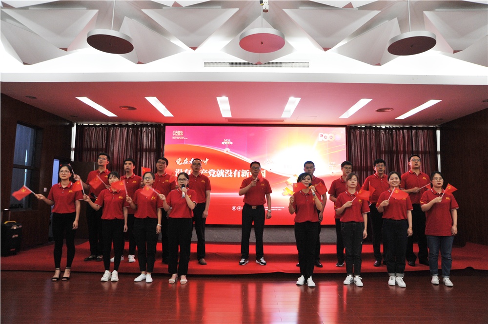 活动伊始,公司党支部书记张富良先生为活动开展致辞,全体党员面对党旗举行了庄严的重温誓词活动,并对2021年优秀党务工作者、优秀党员进行了表彰。在活动中,各部门员工以精心编排的红色合唱歌曲《我和我的祖国》、《打靶归来》、《东方之珠》、《我的中国心》、《大中国》、《团结就是力量》等为党的百年华诞献上了真挚的祝福,一曲全场合唱的《歌唱祖国》将庆典活动气氛推向了高潮。最后,公司董事长丁劲松先生做了重要讲话。