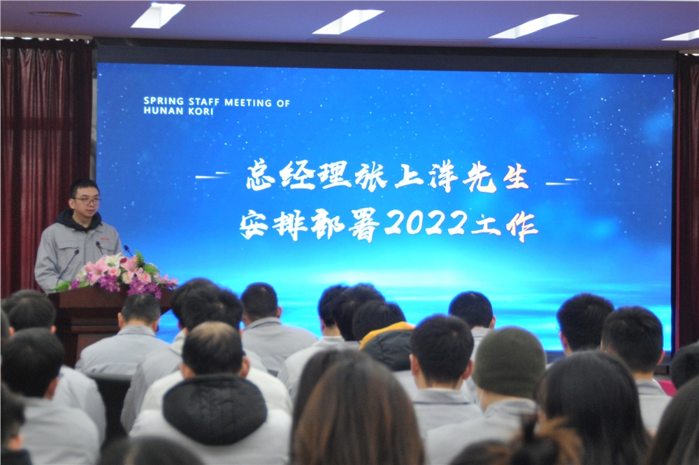 9时30分在办公楼四楼多媒体会议室召开了“2022年第一次全体员工大会”,总经理张上洋先生就2022年工作进行了全面安排部署,董事长丁劲松先生作了重要讲话。