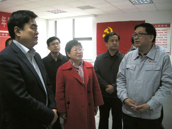 2015年11月21日上午,中央组织部领导同志一行在市委常委组织部长彭爱华同志陪同下莅临公司视察指导党建工作。视察期间,听取了公司党支部书记张富良同志就近年来公司党支部如何开展党建工作的情况汇报,参观了公司党员活动室,走访了车间一线党员,并就下阶段如何进一步抓好党建工作,充分发挥党员先锋模范带头作用,提出了新的更高要求与希望。
