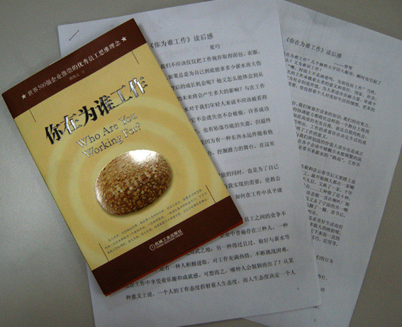 此次读书月活动的指定书目为世界500强企业推荐书目《你在为谁工作》一书,公司全体员工积极参与、认真研读,立足本职工作写出了一大批具有真情实感的心得文章。活动共收到征文99份。经评委会严格审定,评出了一、二、三等奖,公司对获奖者给予了表彰和奖励。