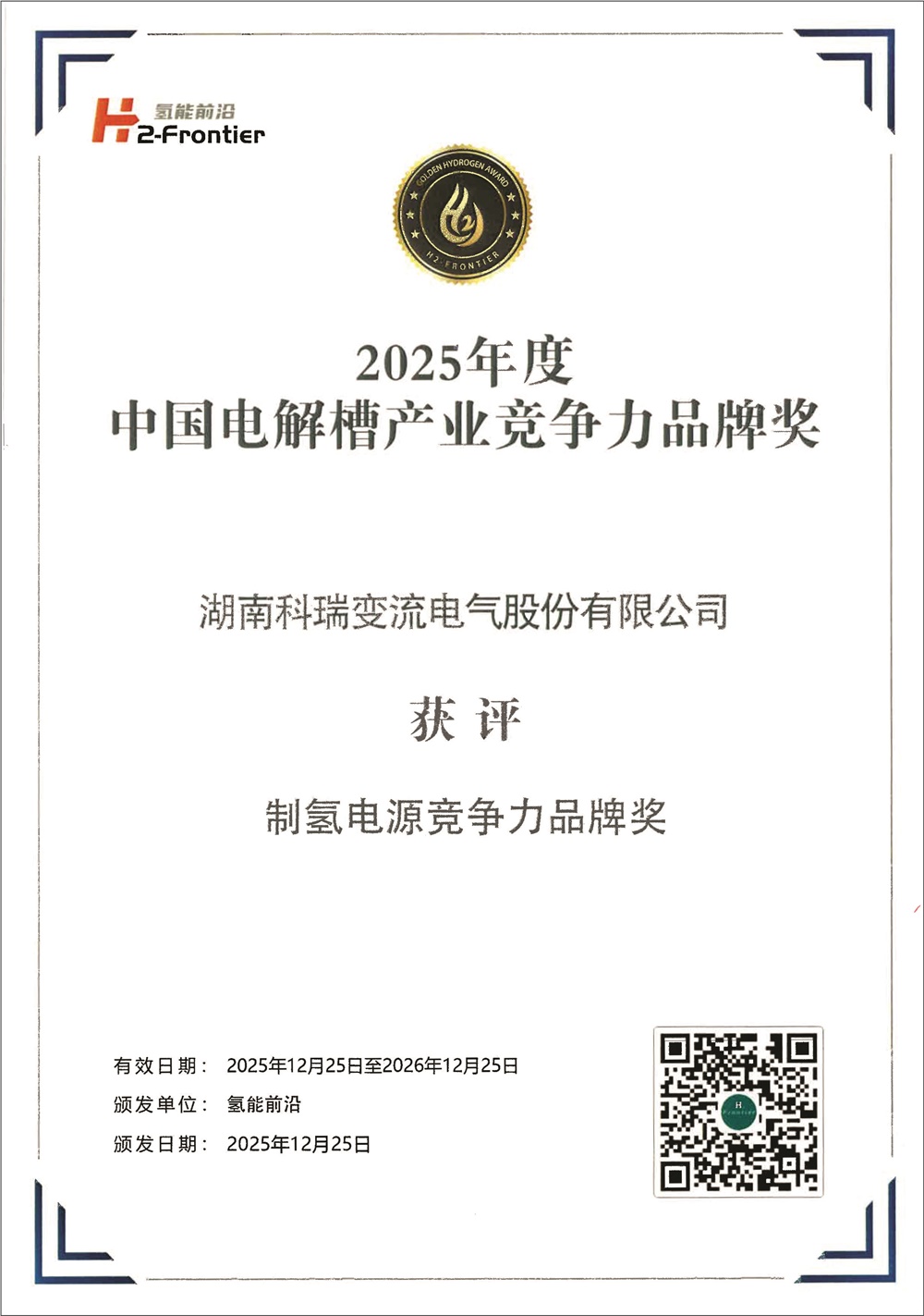 制氢电源竞争力品牌奖